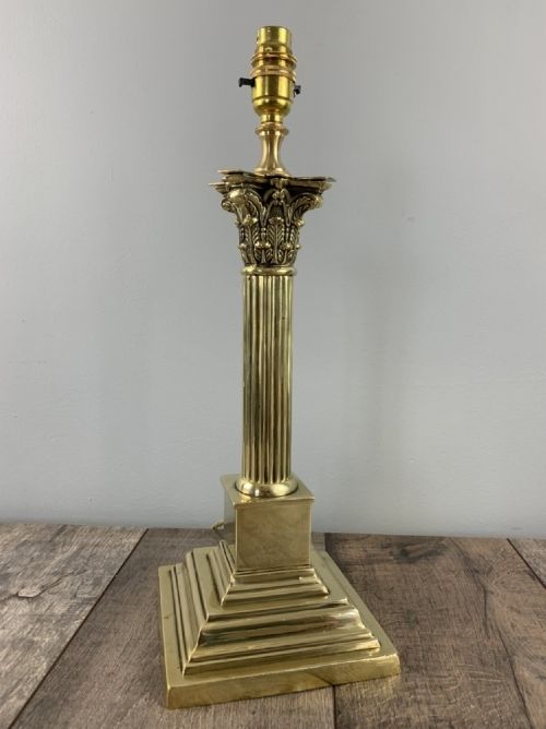 Quality Victorian Brass Corinthian Column Table Lamp, Rewired & PAT Tested