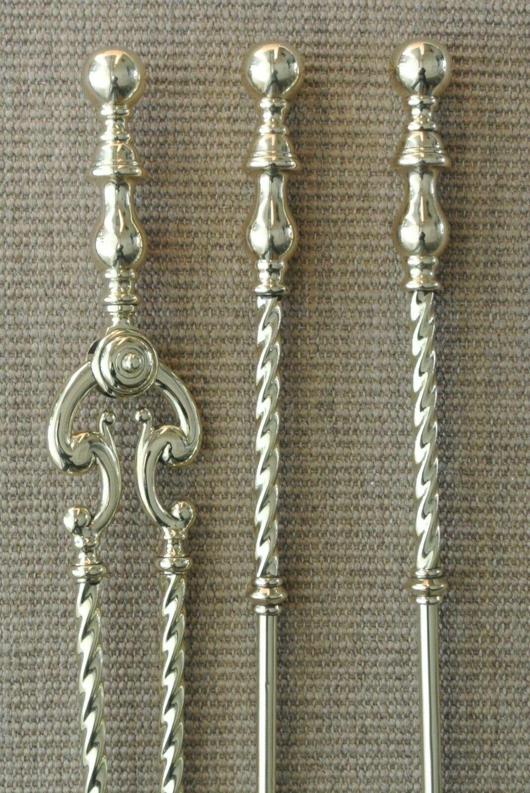 Quality Victorian Brass Fire Irons Companion Set Tongs Poker Shovel c.1895