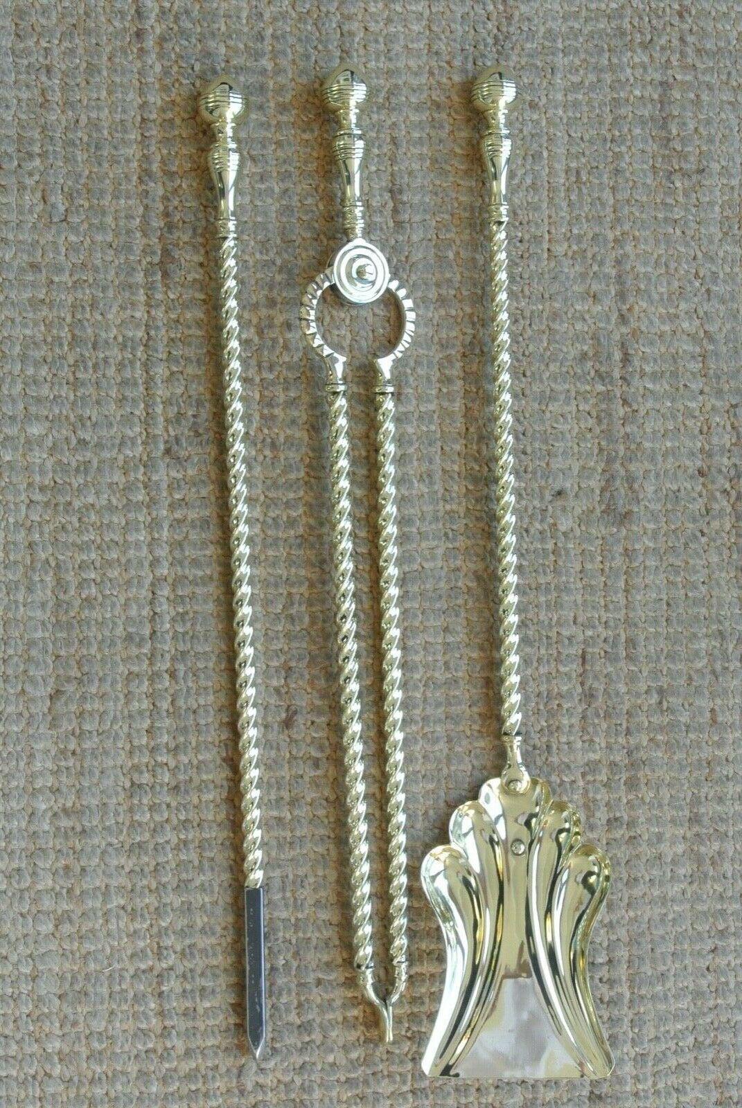 Quality Victorian Brass Fire Irons Companion Set Tongs Poker Shovel c.1895