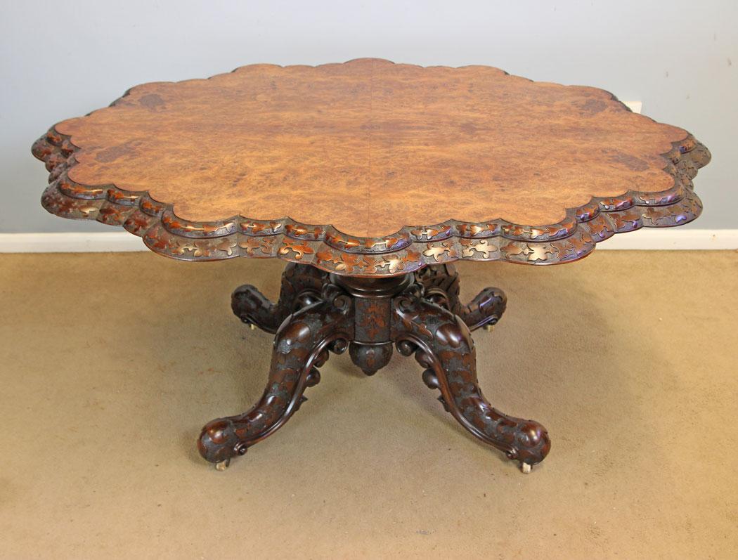 Quality Victorian Centre Burr Walnut Dining Table (1 of 8)
