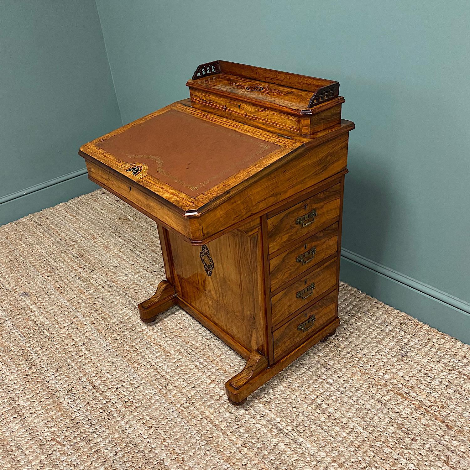 Quality Victorian Figured Walnut Antique Davenport