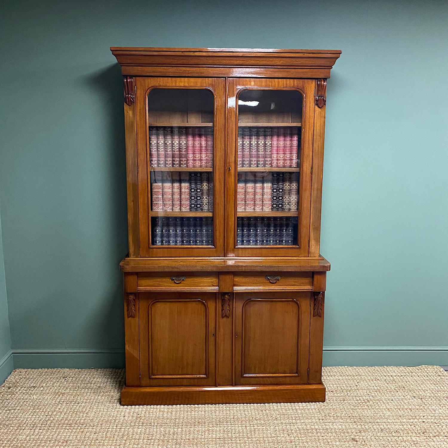 Quality Victorian Mahogany Glazed Antique Bookcase on Cupboard