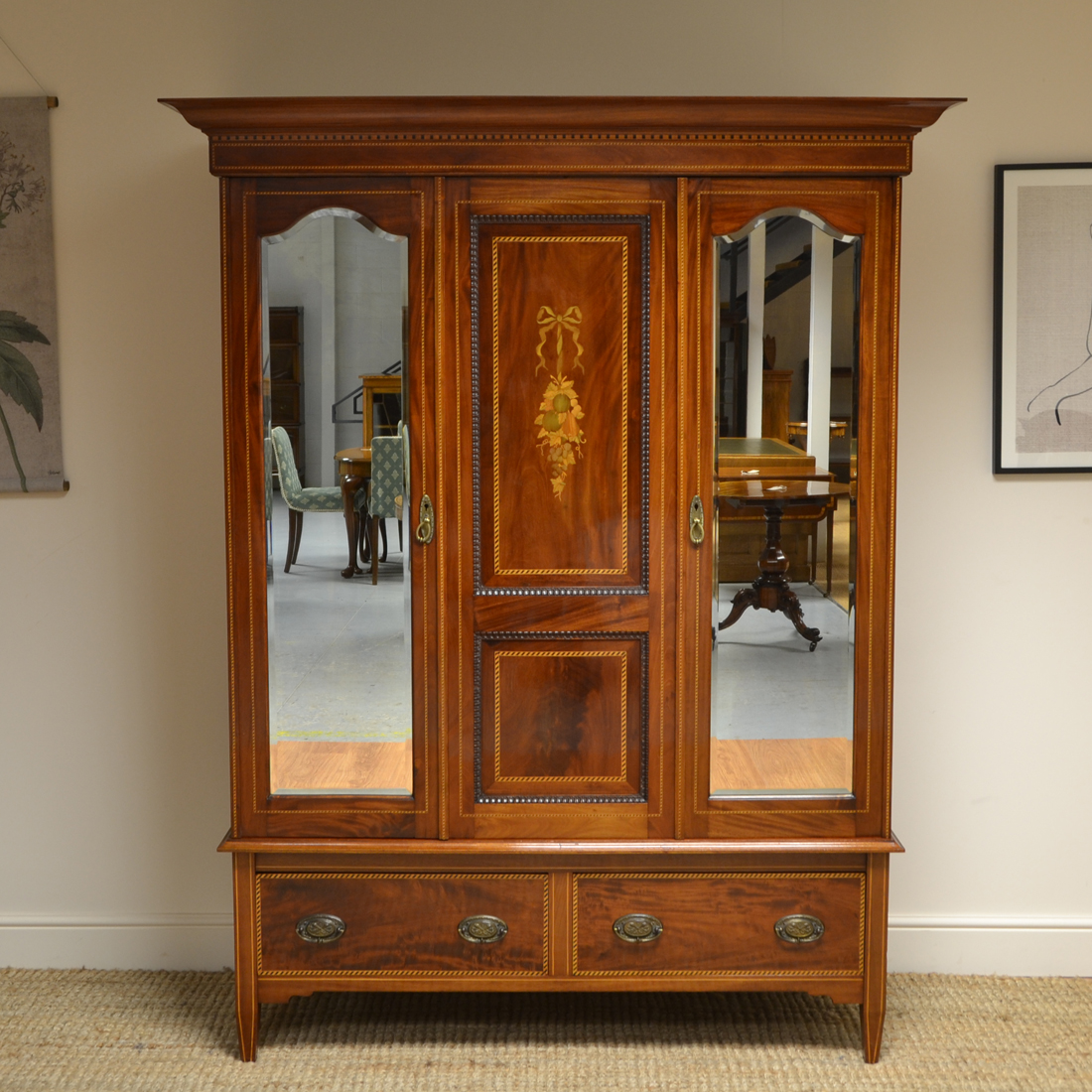 Quality Victorian Mahogany Inlaid Antique Double Wardrobe