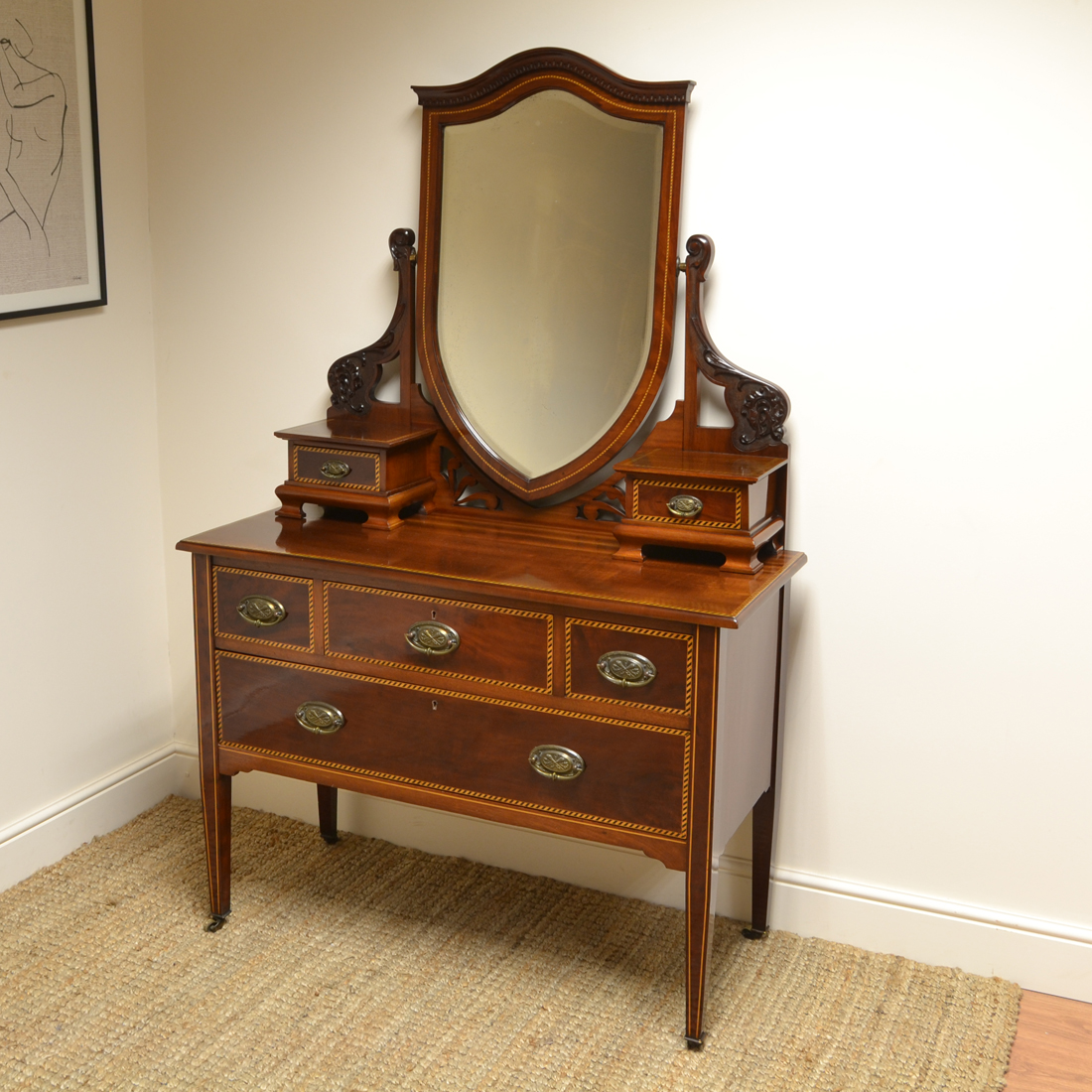 Quality Victorian Mahogany Inlaid Antique Dressing Table