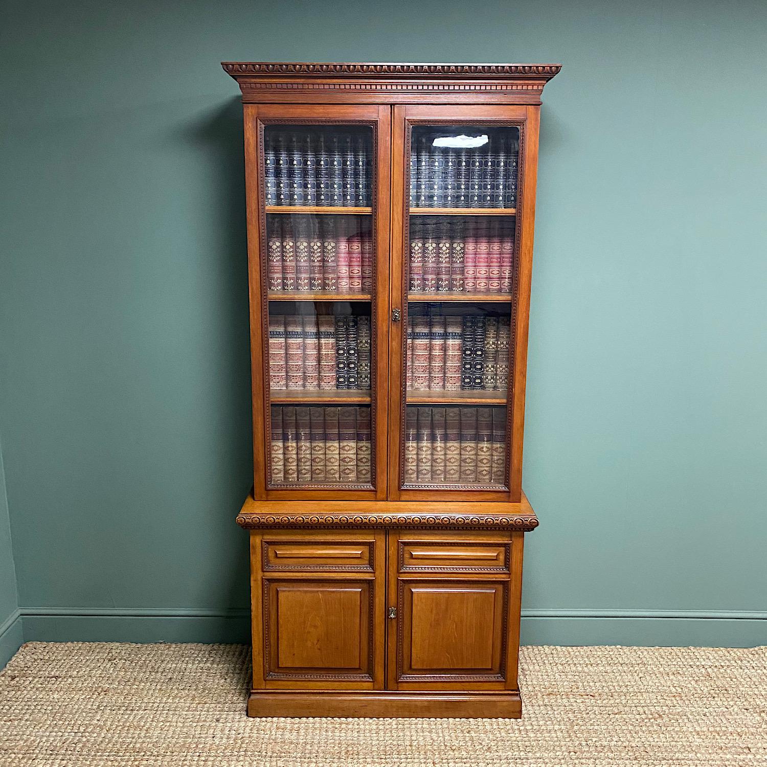 Quality Victorian Walnut Antique Glazed Bookcase on Cupboard