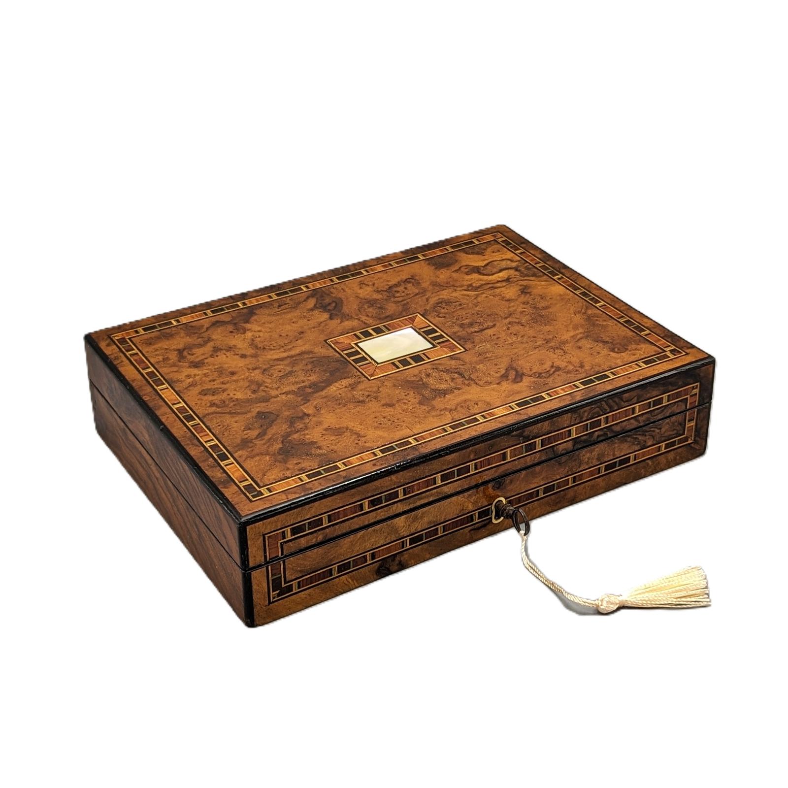 Quality Victorian Walnut & Inlaid Cufflink / Trinket Box