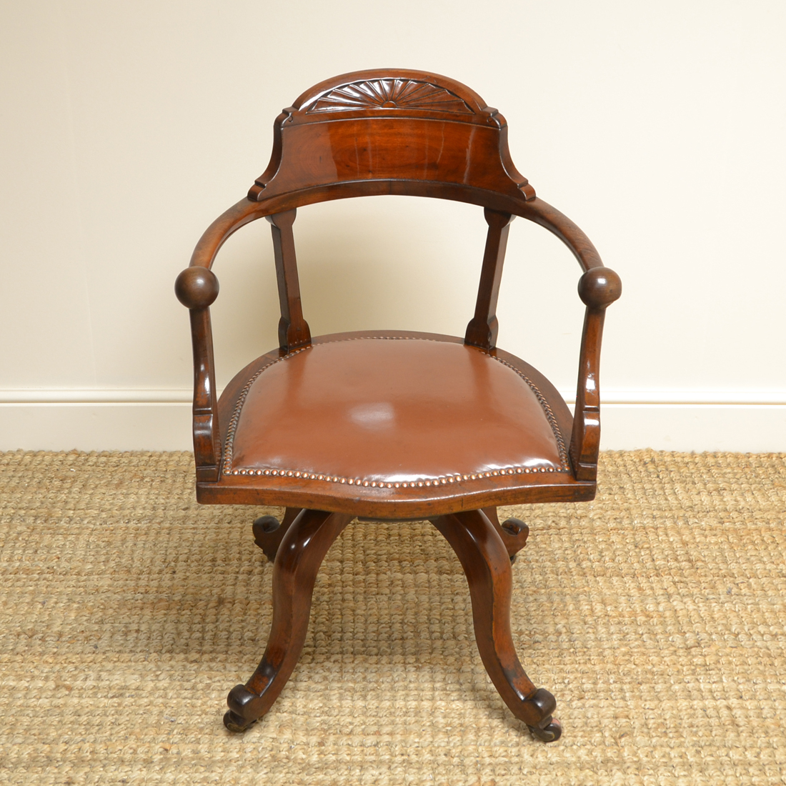 Quality Victorian Walnut Swivel Antique Office Chair / Desk Chair
