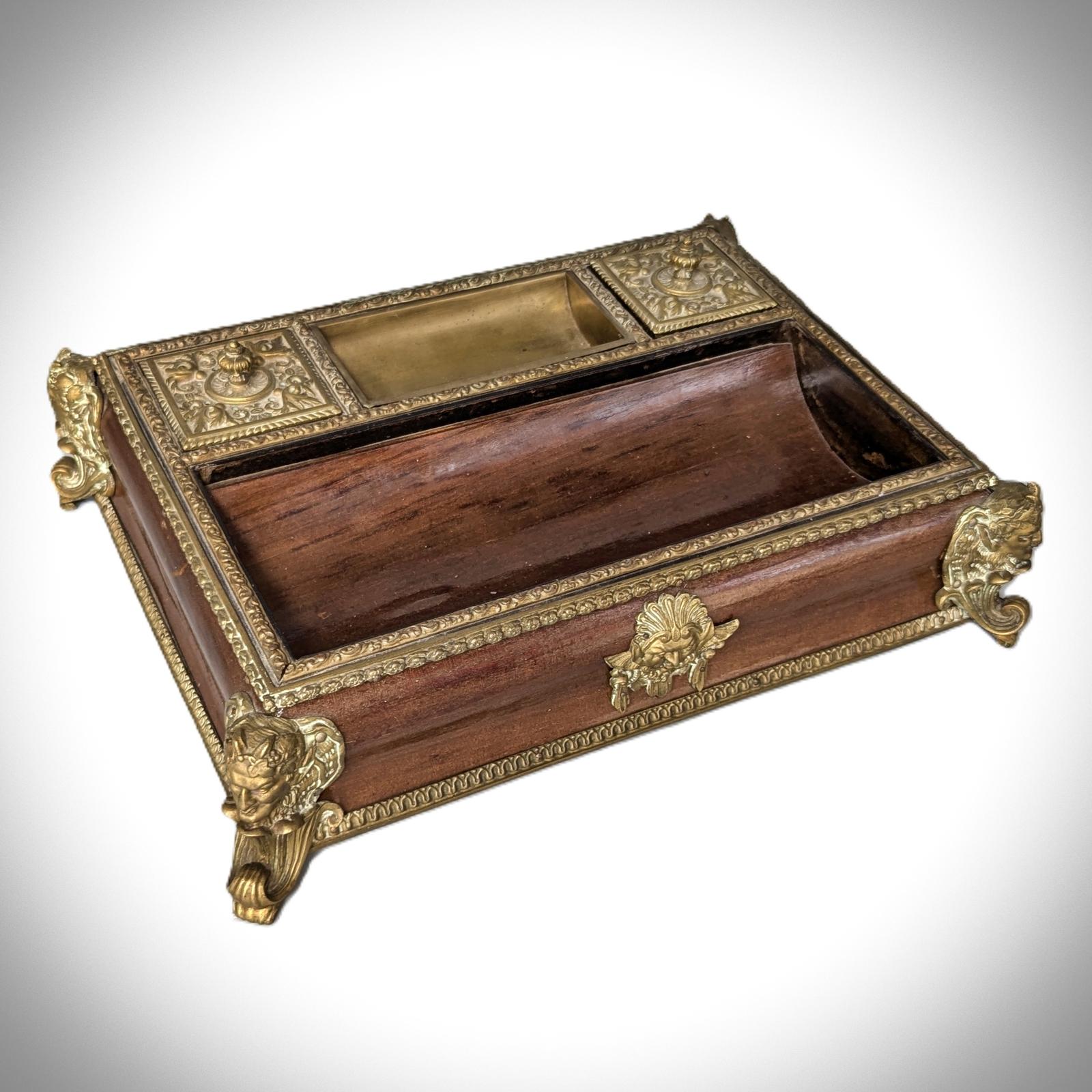 Quality Walnut & Bronze Mounted Desk Tidy Standish Inkwells