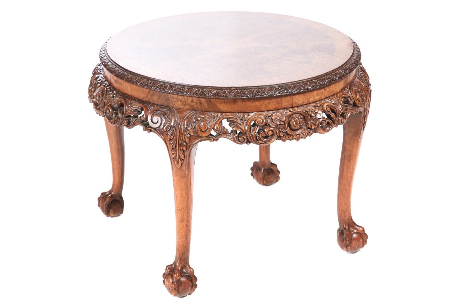 Quality Walnut Carved Circular Coffee Table c.1920 (1 of 1)