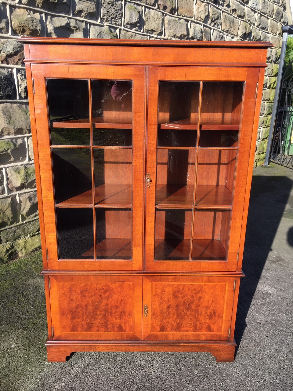 Quality Walnut Glazed Bookcase Cabinet c.1920