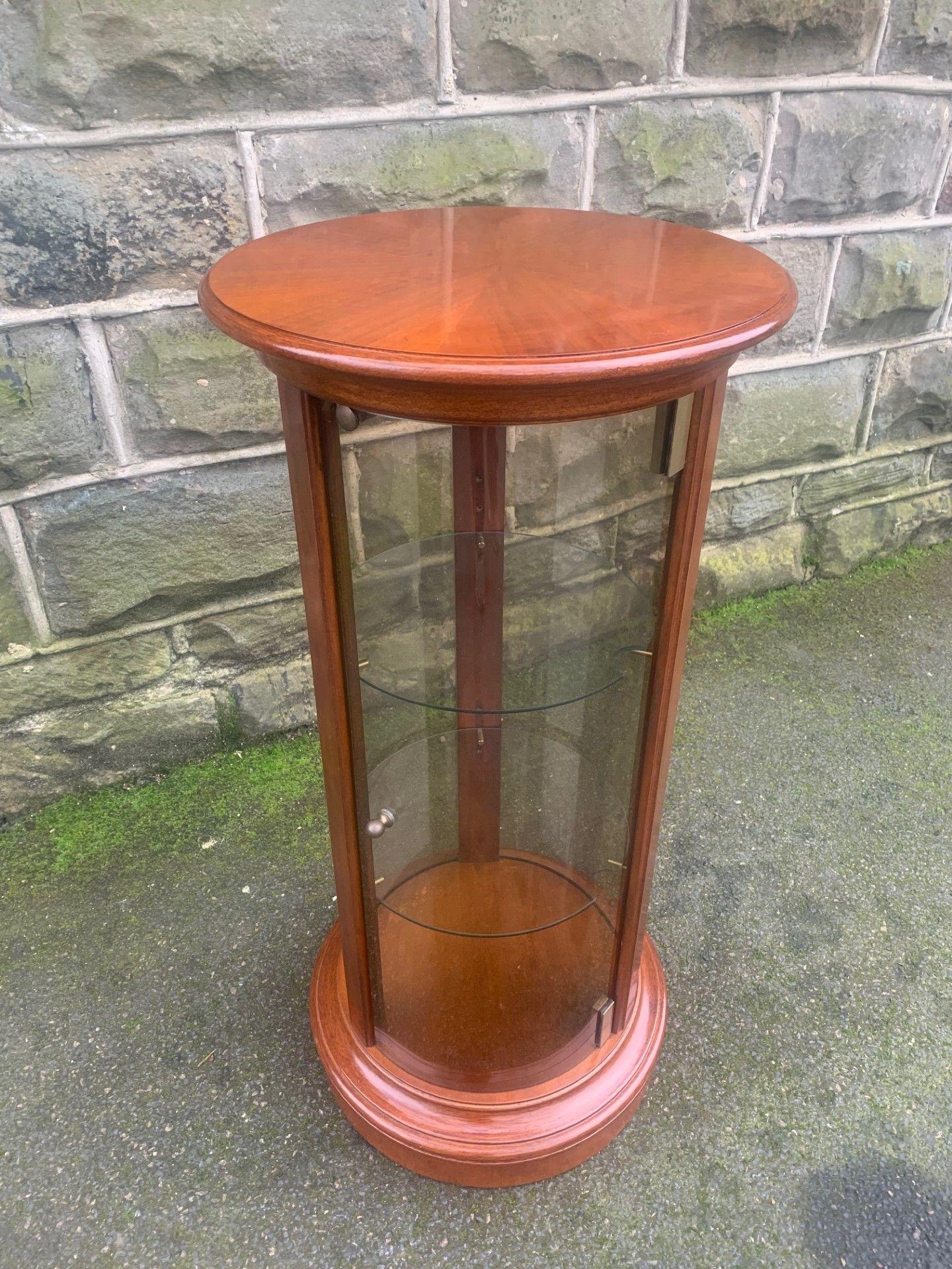 Quality Walnut Glazed Cylindrical Display Cabinet Vitrine (1 of 7)