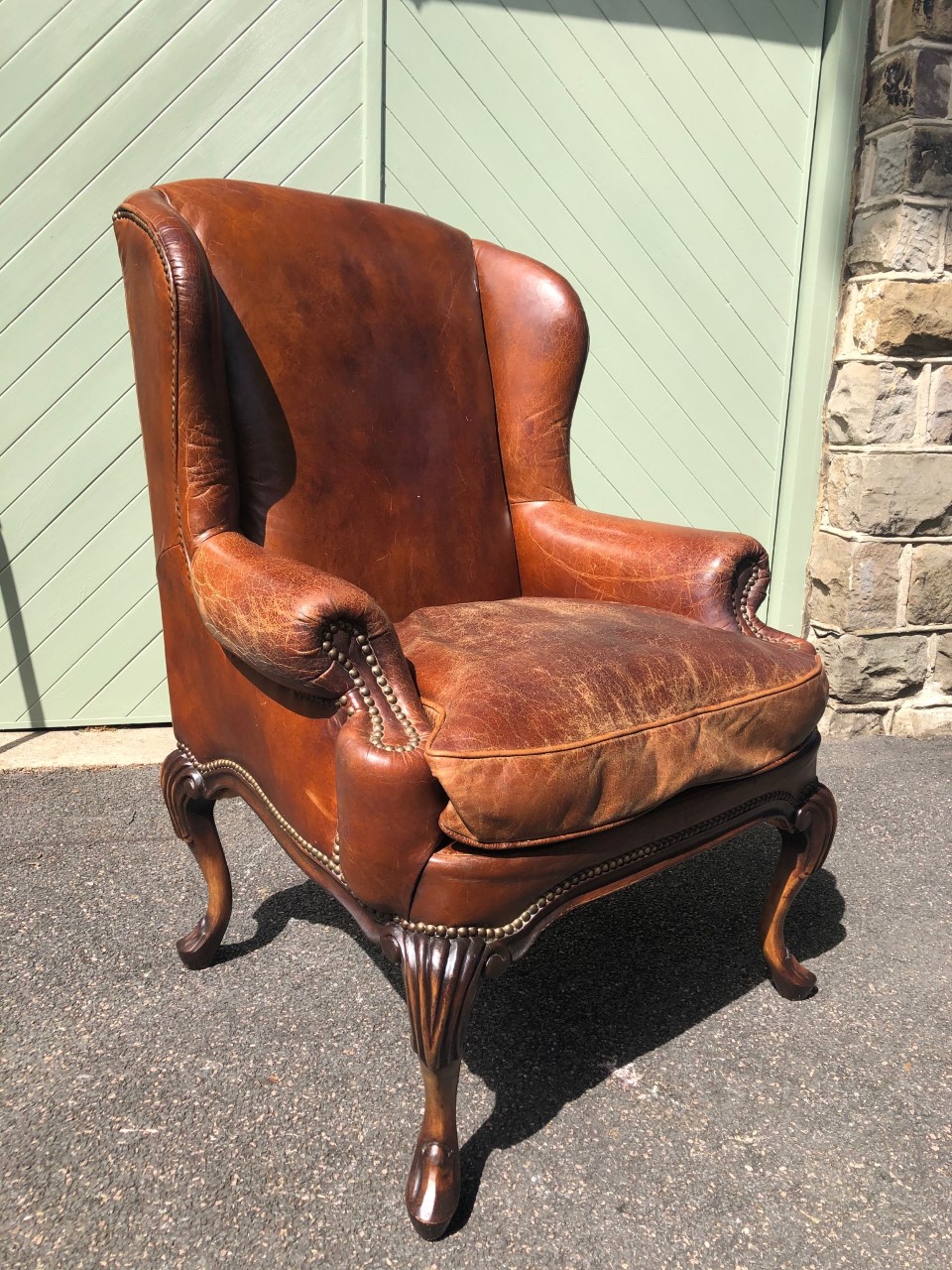 Quality Walnut & Leather Wing Armchair
