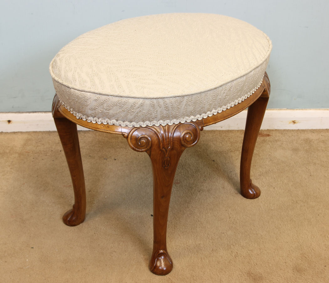 Quality Walnut Oval Stool, Dressing Table Stool, Queen Anne Style Stool