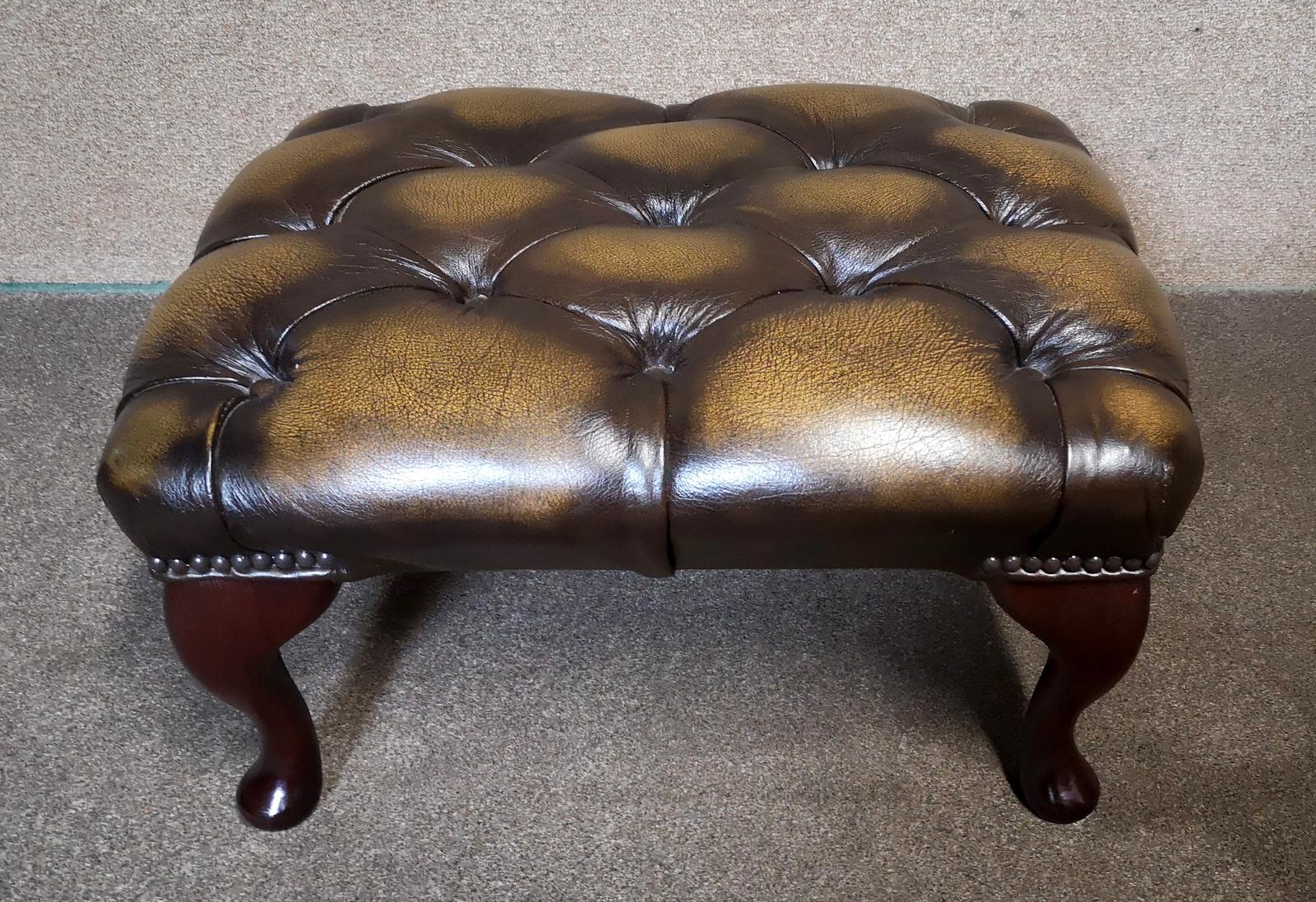Queen Anne Brown Leather Chesterfield Foot Stool