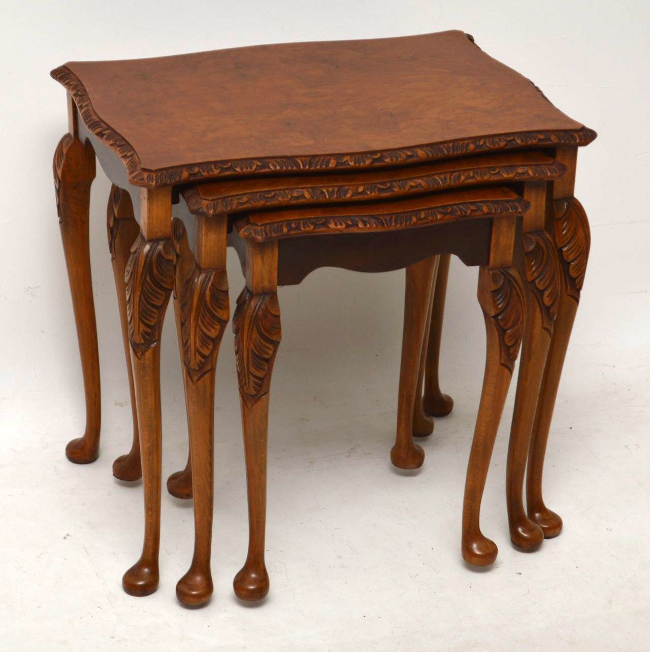 Queen Anne Burr Walnut Nest of Tables c.1930 (1 of 1)
