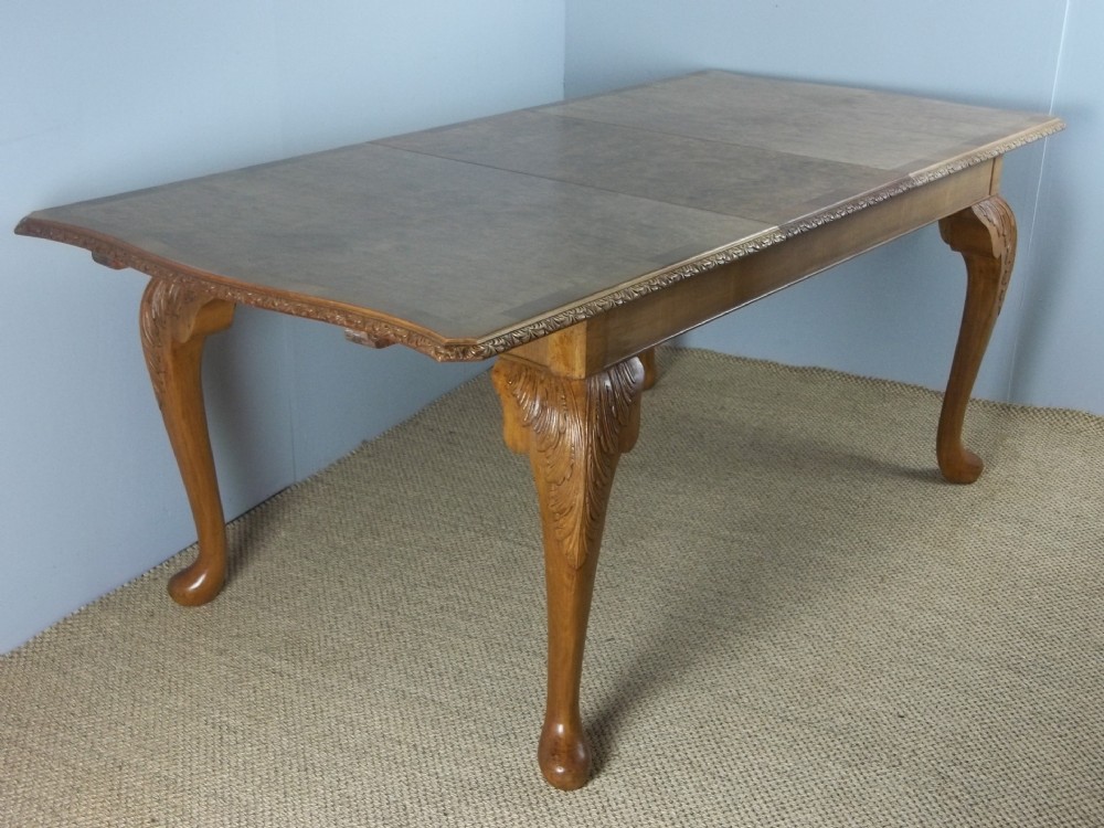 Queen Anne Design Burr Walnut Extending 8 to 10 Seat Art Deco Dining Table