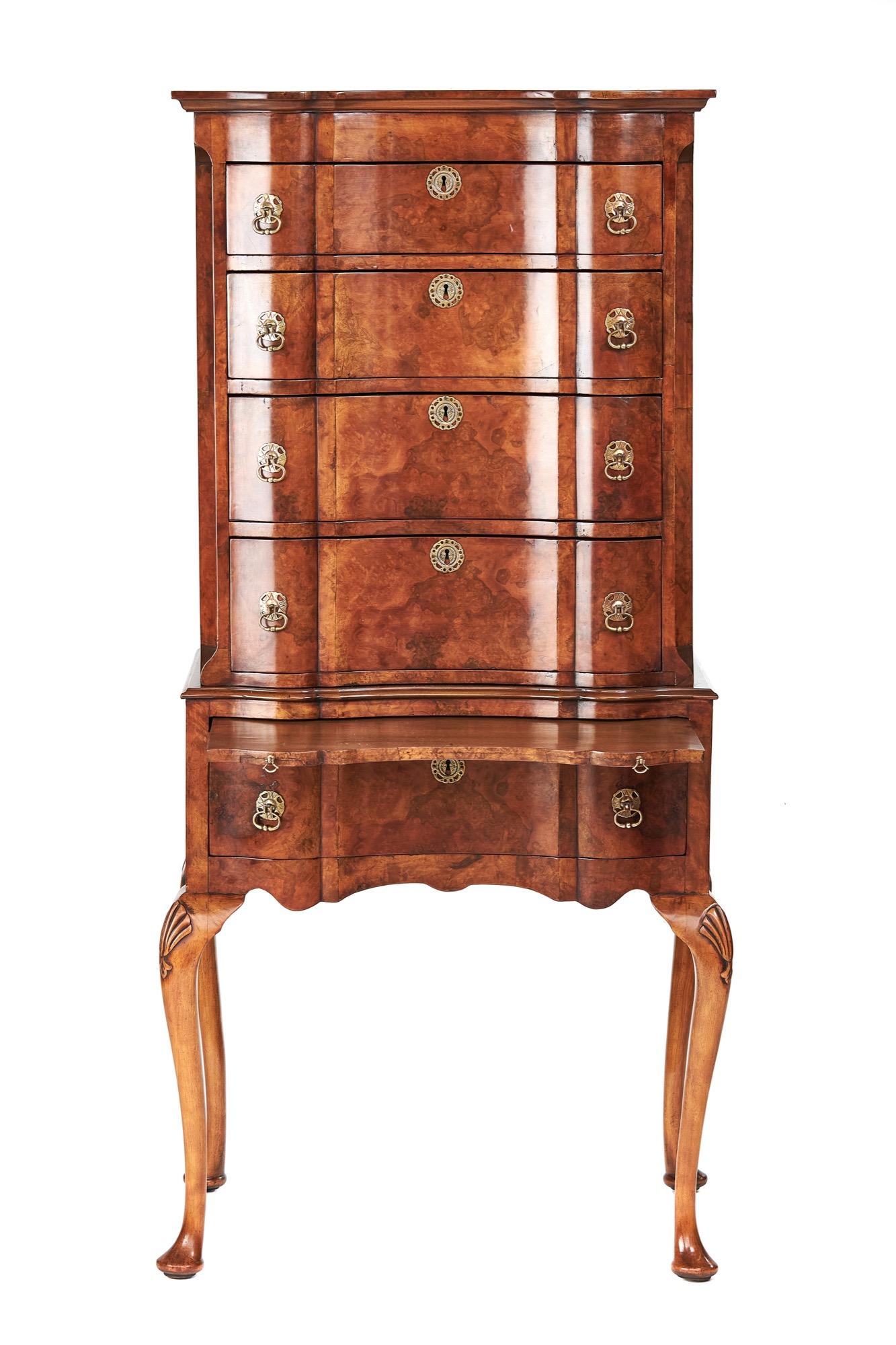 Queen Anne Revival Burr Walnut Chest on Lowboy with Slide (1 of 8)