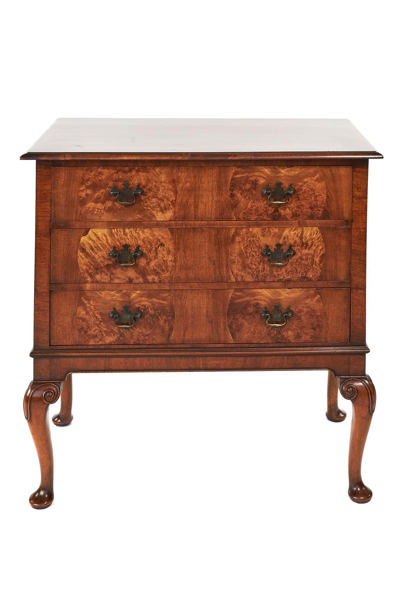 Queen Anne Revival Walnut 3 Drawer Chest c.1920 (1 of 7)