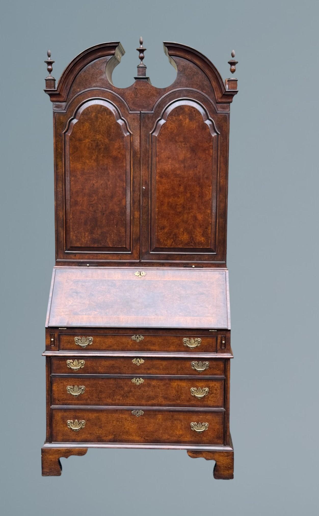 Queen Anne Style Burr Walnut Bureau Bookcase