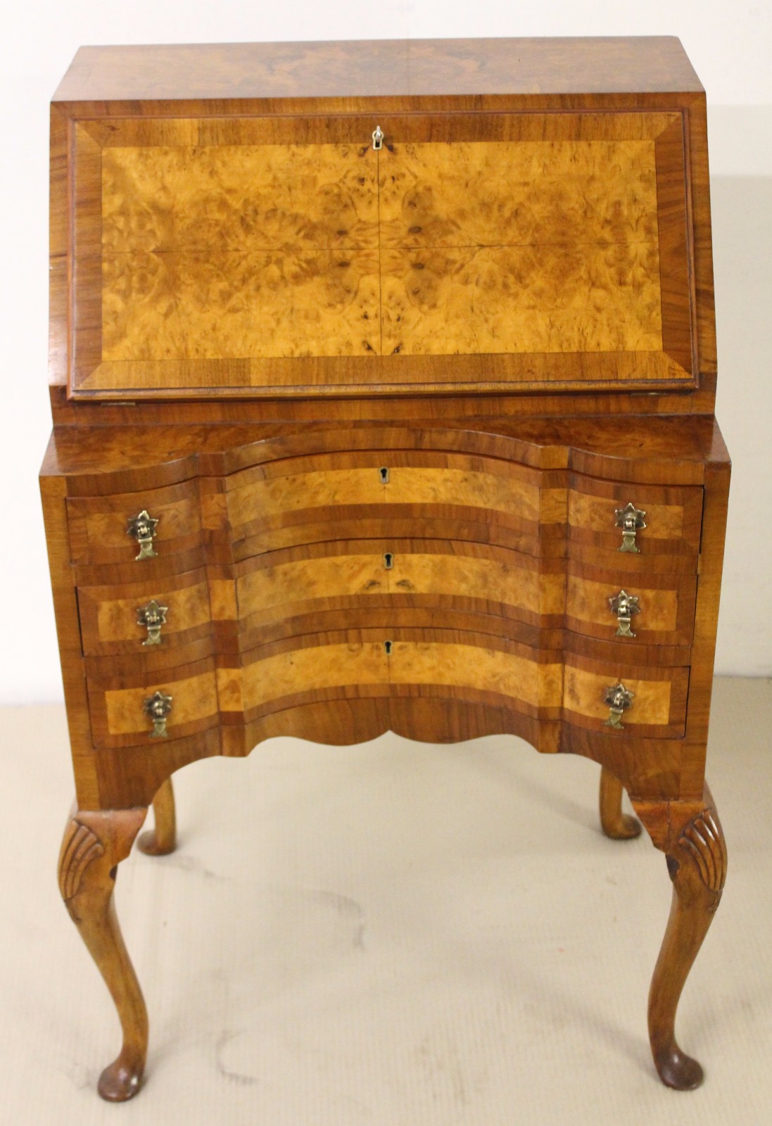 Queen Anne Style Burr Walnut Bureau c.1900 (1 of 1)