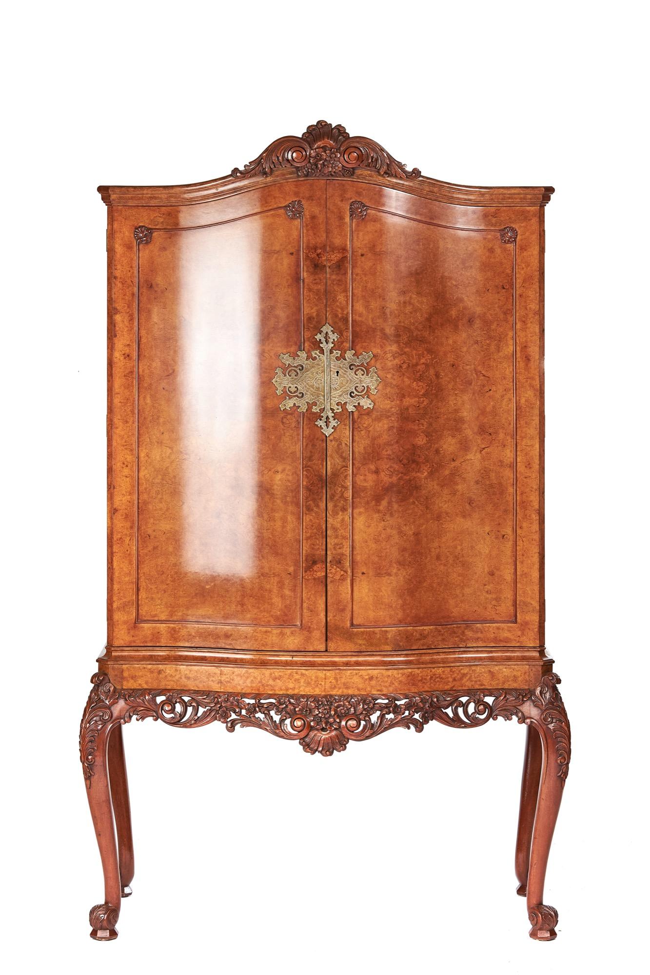 Queen Anne Style Burr Walnut & Carved Cocktail Cabinet c.1930