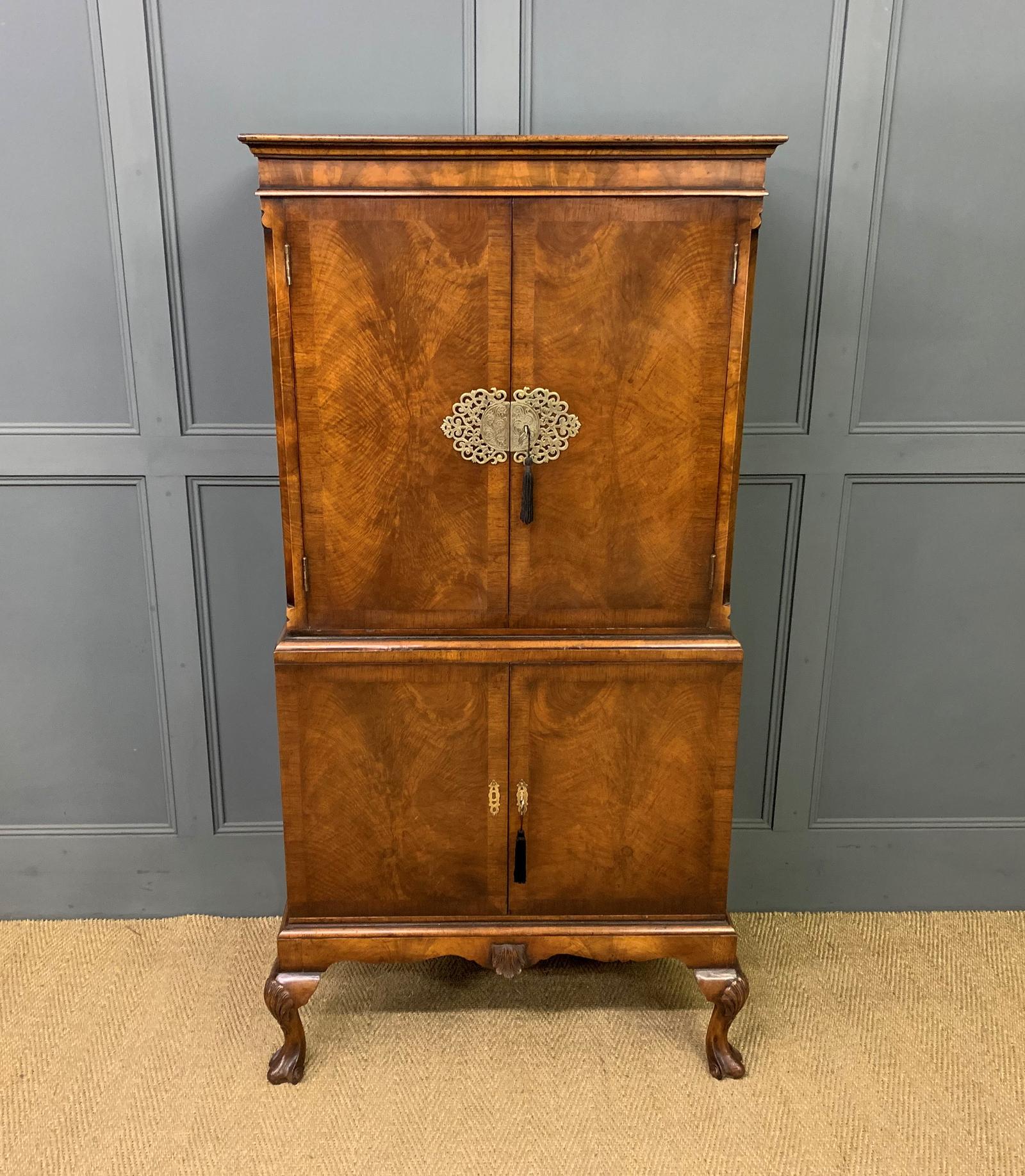 Queen Anne Style Burr Walnut Cocktail Cabinet c.1920