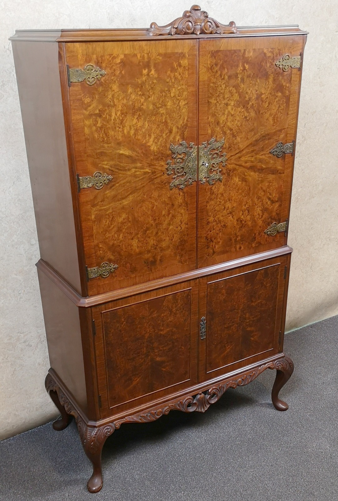 Queen Anne Style Burr Walnut Cocktail Drinks Cabinet c.1920 (1 of 1)