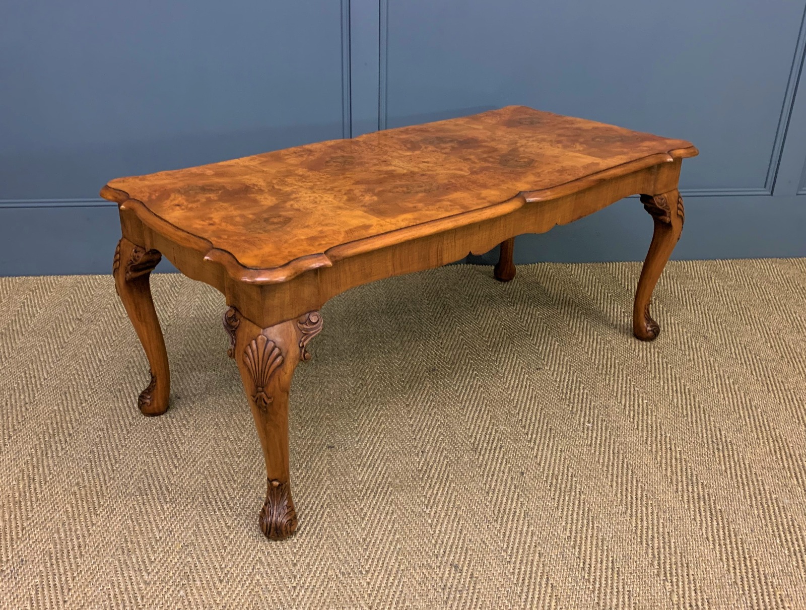 Queen Anne Style Burr Walnut Coffee Table c.1920