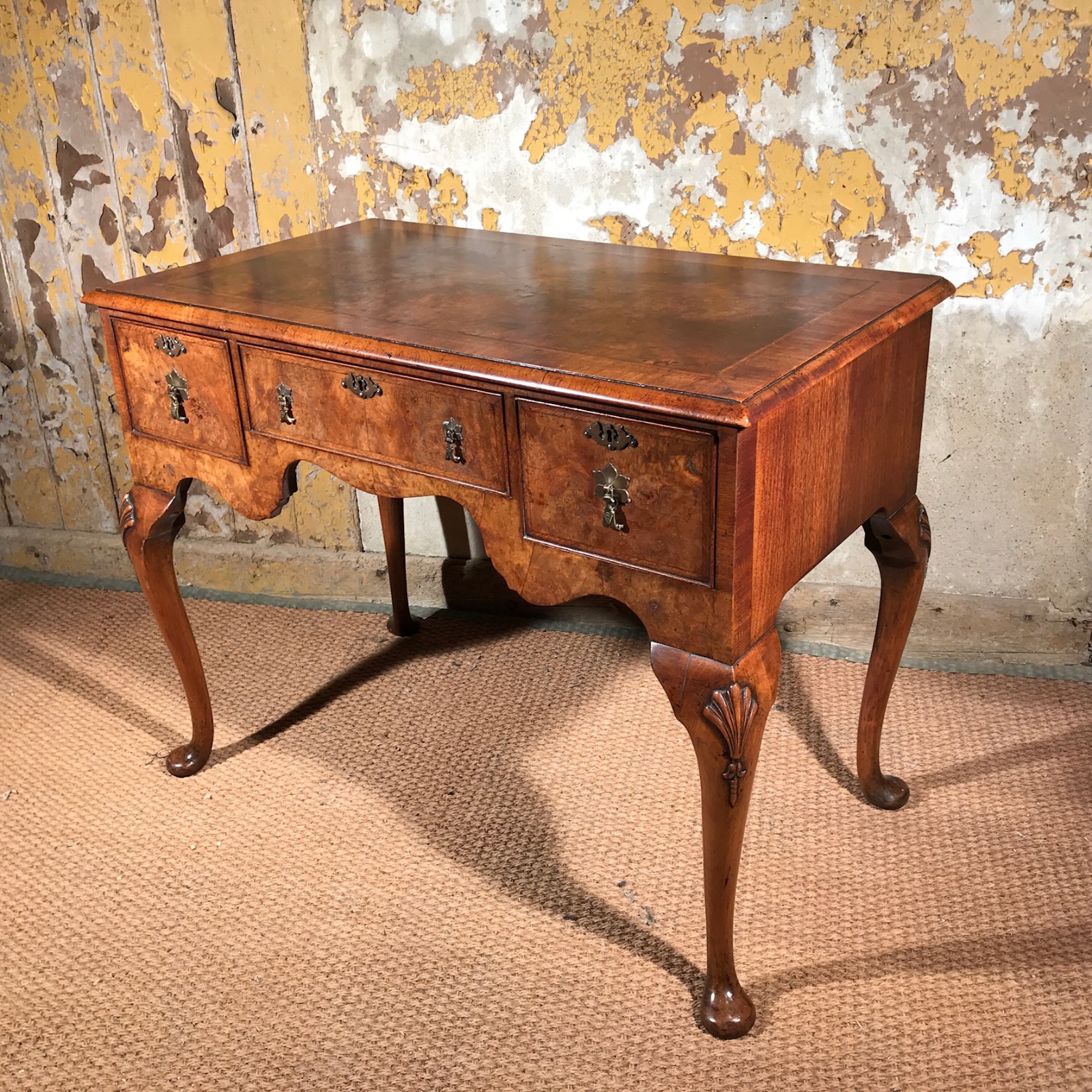 Queen Anne Style Burr Walnut Desk or Dressing Table c.1900