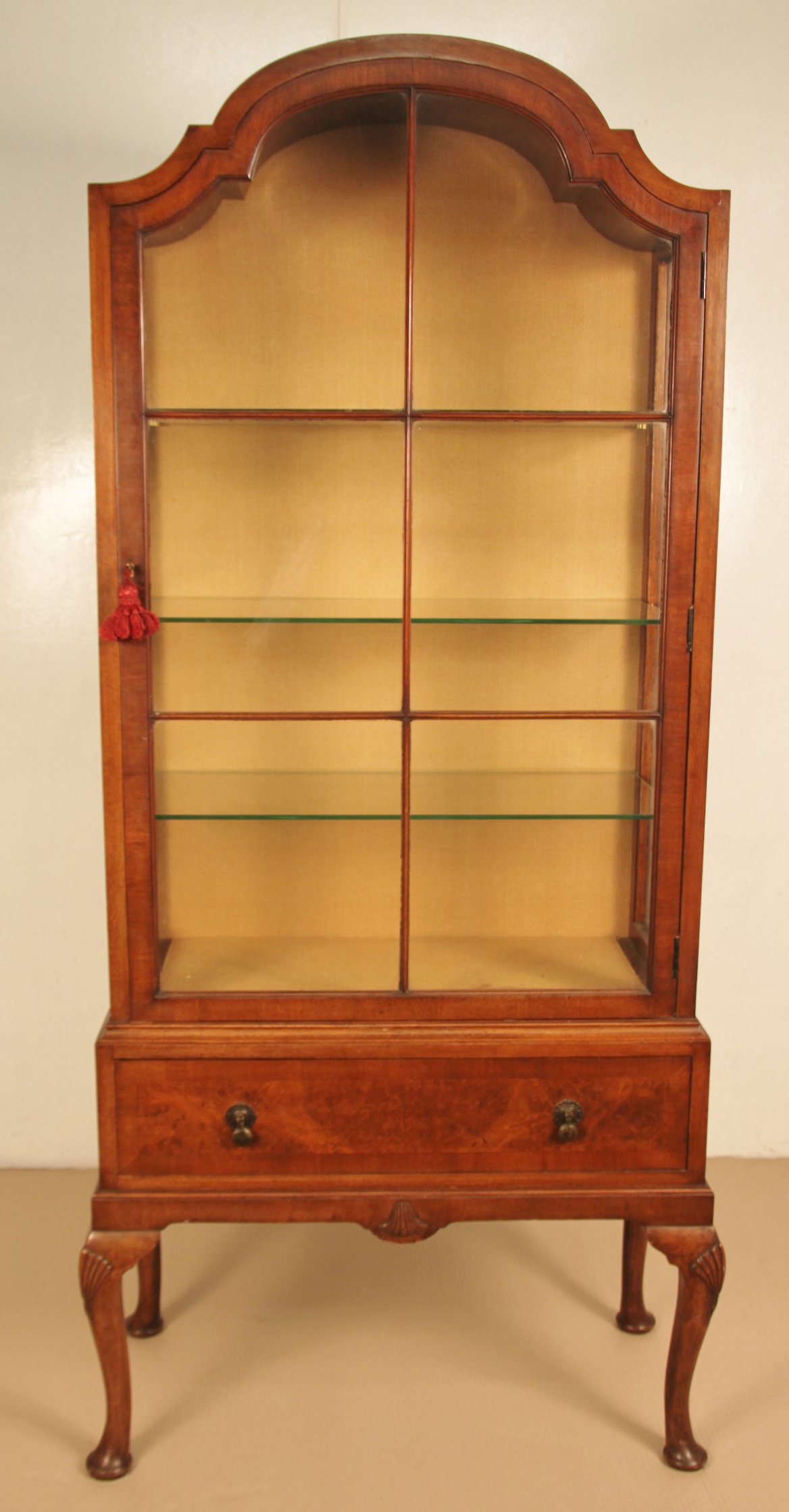 Queen Anne Style Burr Walnut Display Cabinet (1 of 1)