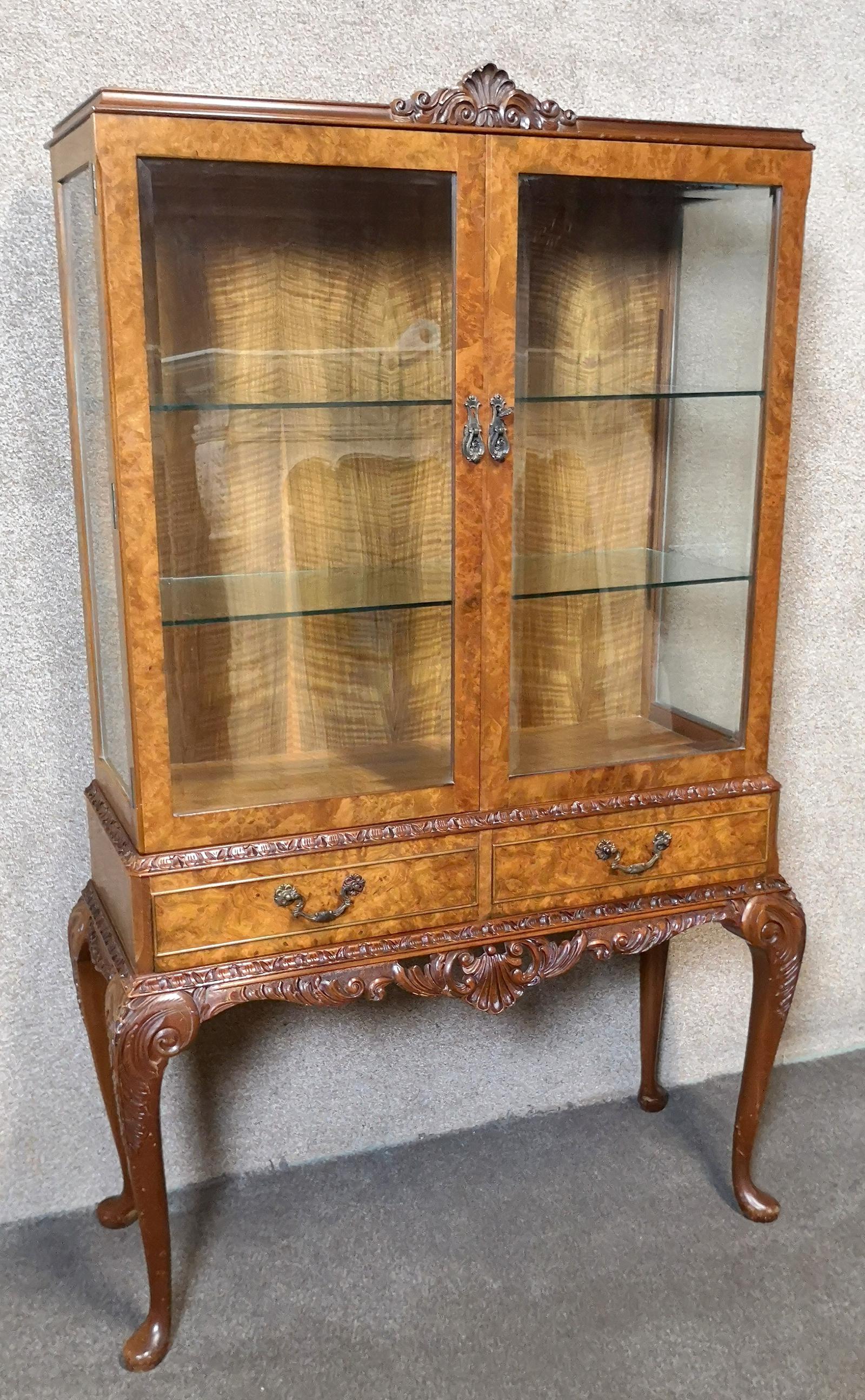 Queen Anne Style Burr Walnut Display Cabinet (1 of 10)