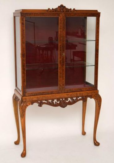 Queen Anne Style Burr Walnut Display Cabinet c.1930