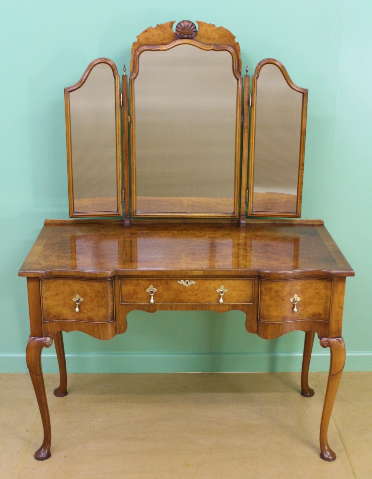 Queen Anne Style Burr Walnut Dressing Table c.1900