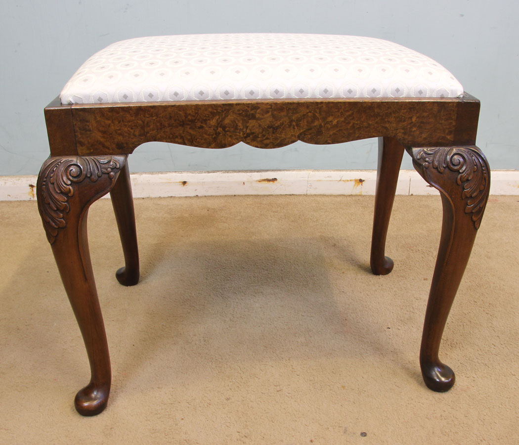 Queen Anne Style Burr Walnut Dressing Table Stool