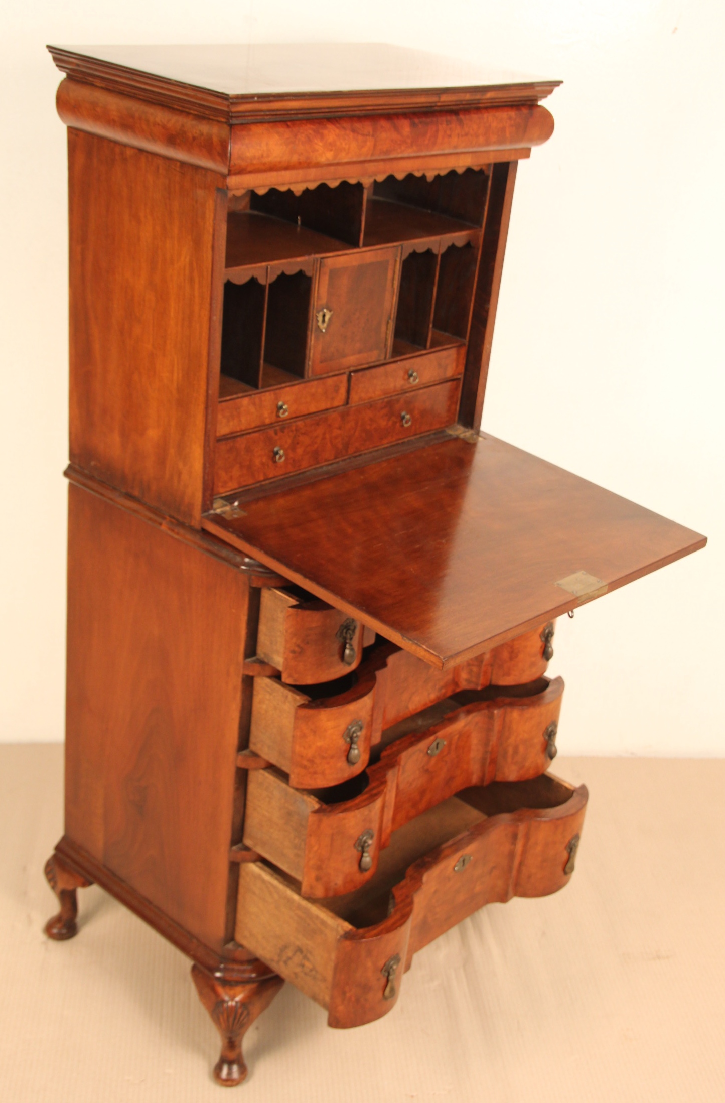 Queen Anne Style Burr Walnut Escritoire c.1900