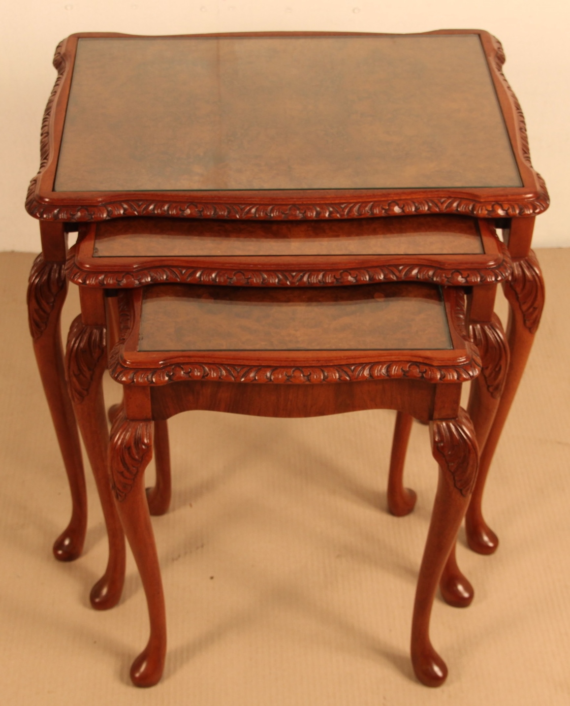 Queen Anne Style Burr Walnut Nest of Tables c.1920 (1 of 1)