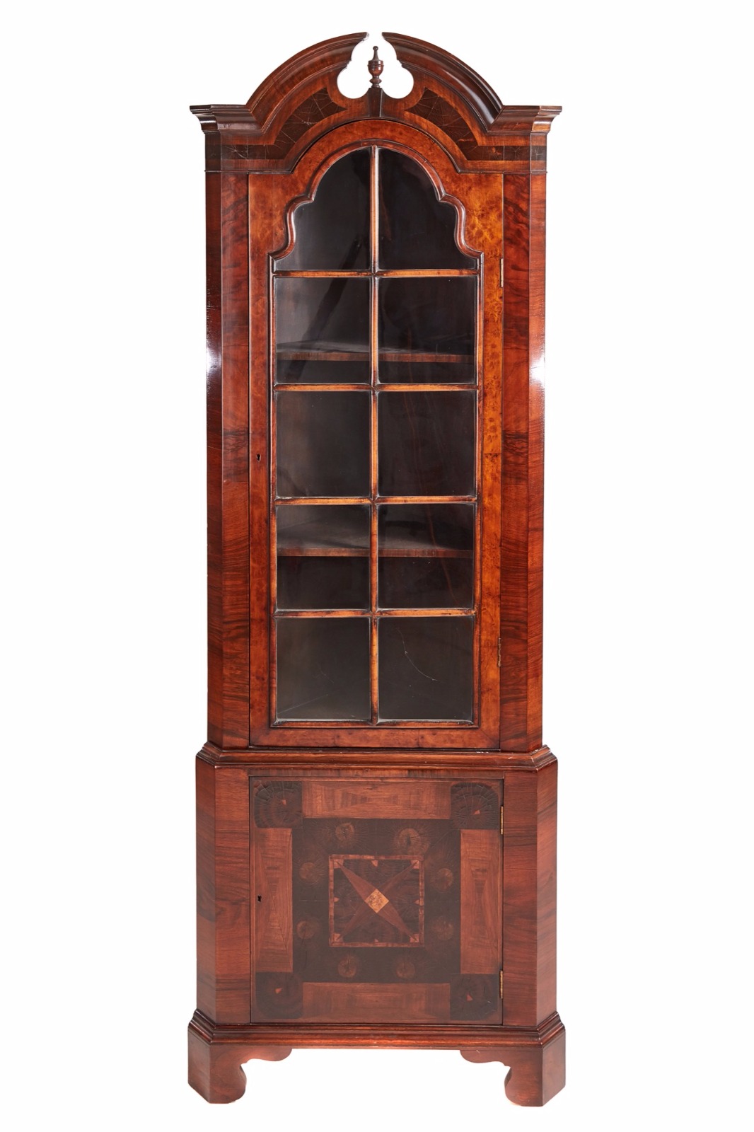 Queen Anne style Burr Walnut & Oyster Wood Corner Cabinet c.1900