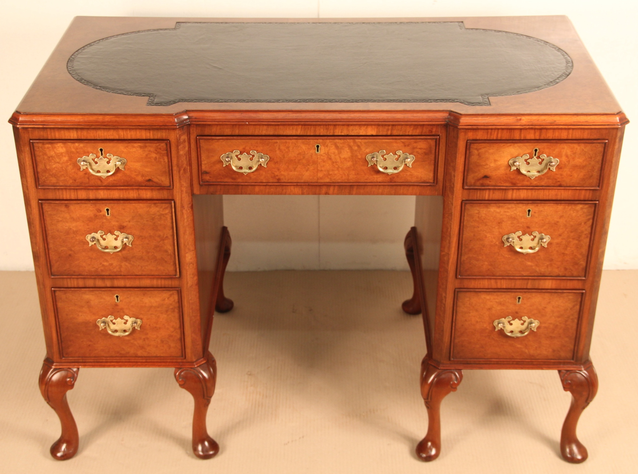 Queen Anne Style Burr Walnut Pedestal Desk c.1900 (1 of 1)