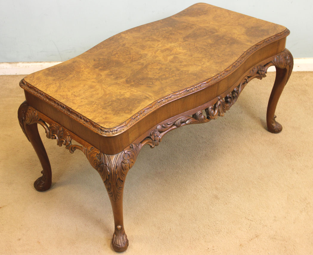 Queen Anne Style Burr Walnut Shaped Coffee Table