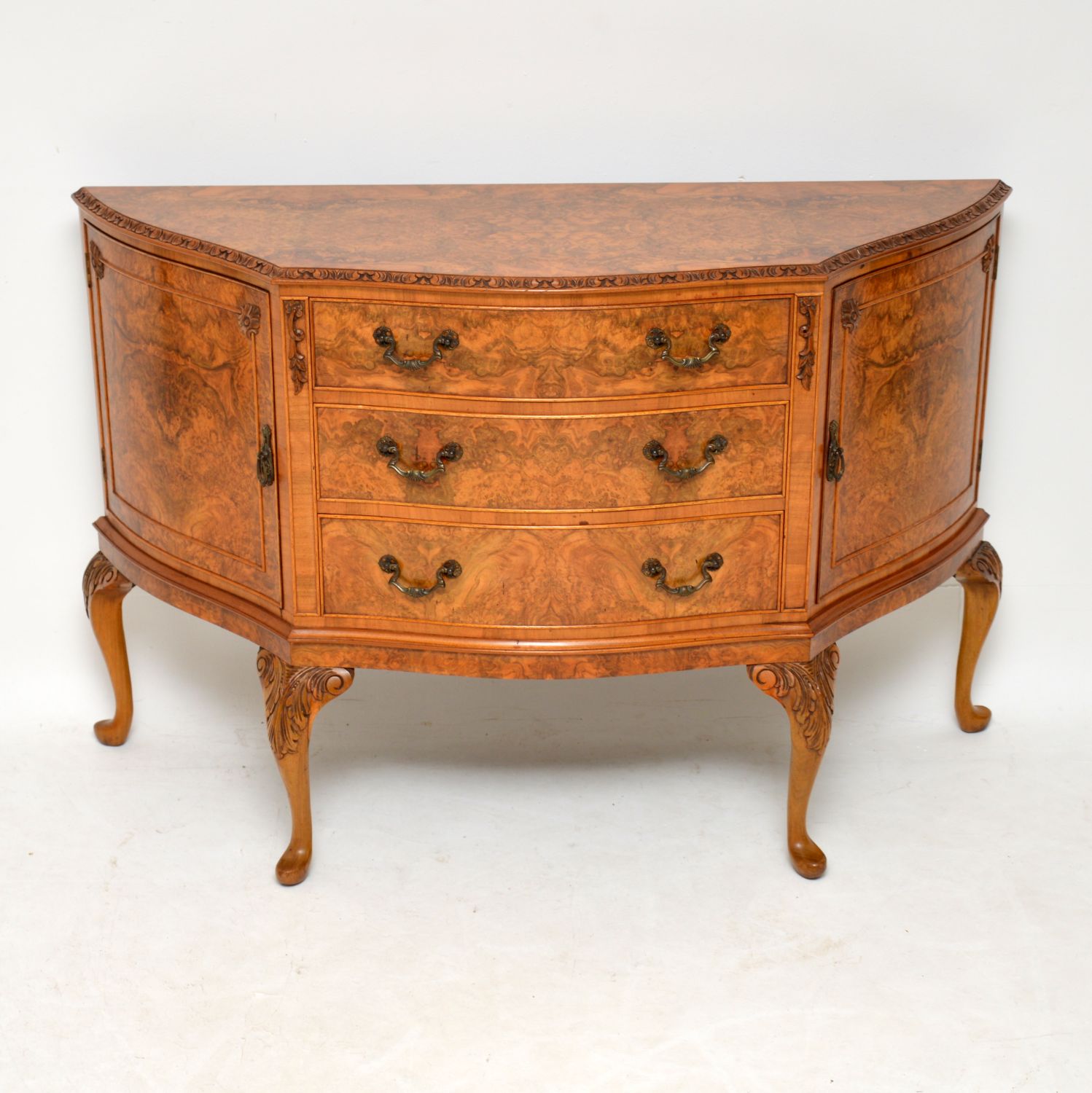 Queen Anne Style Burr Walnut Sideboard c.1930