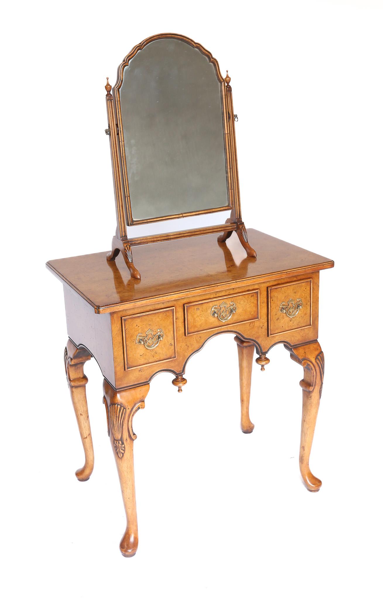 Queen Anne Style Burr Walnut Small Dressing Table Circa 1930s