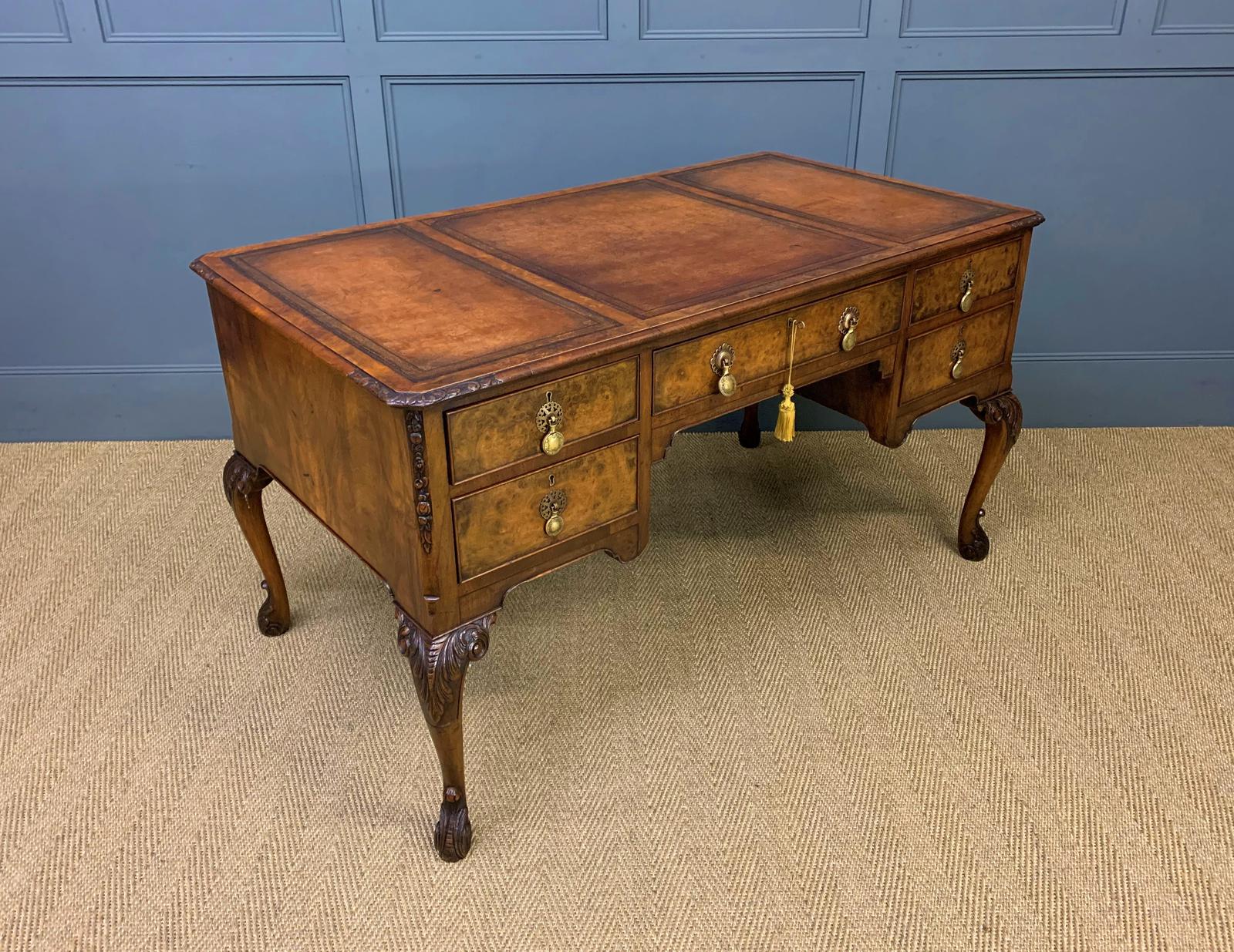 Queen Anne Style Burr Walnut Writing Desk