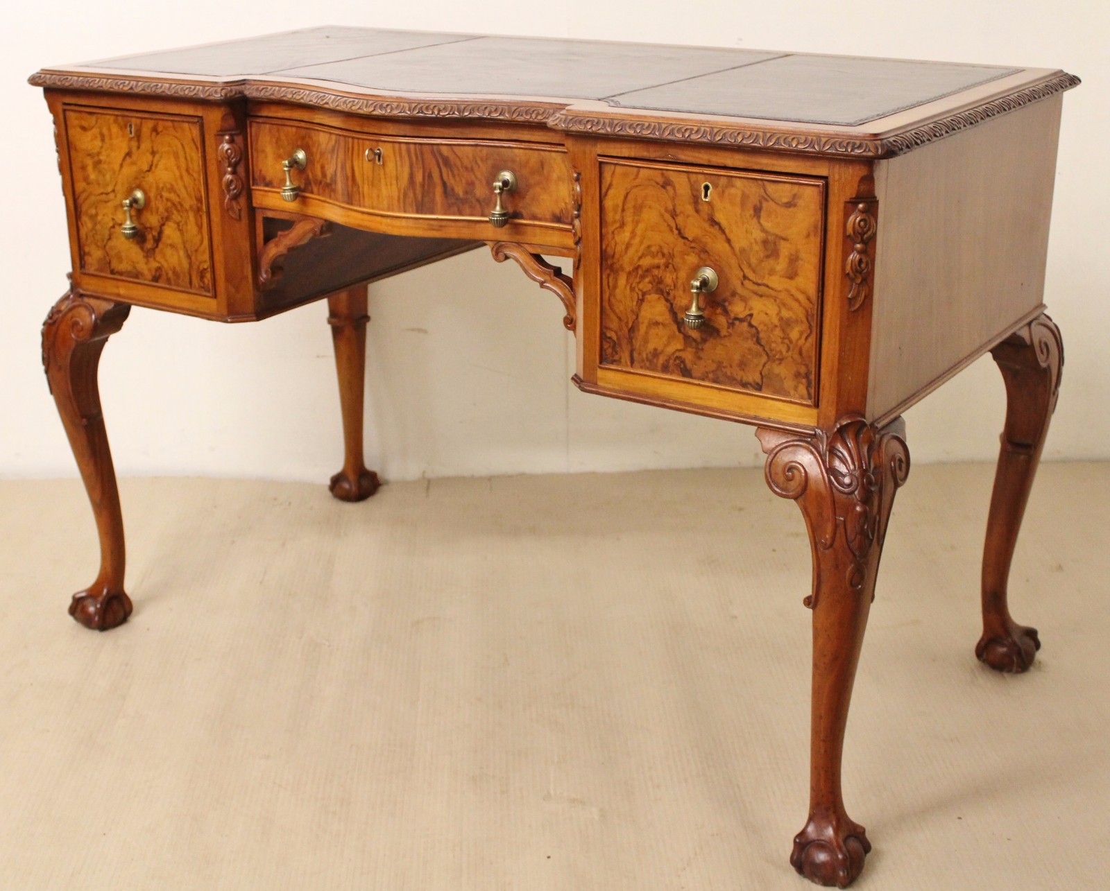 Queen Anne Style Burr Walnut Writing Table c.1900
