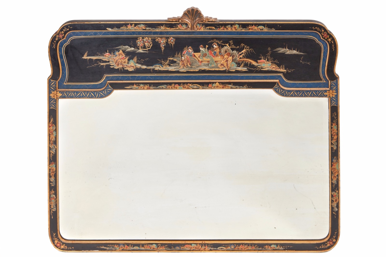 Queen Anne style Chinoiserie Lacquered Decorated Wall Mirror c.1900