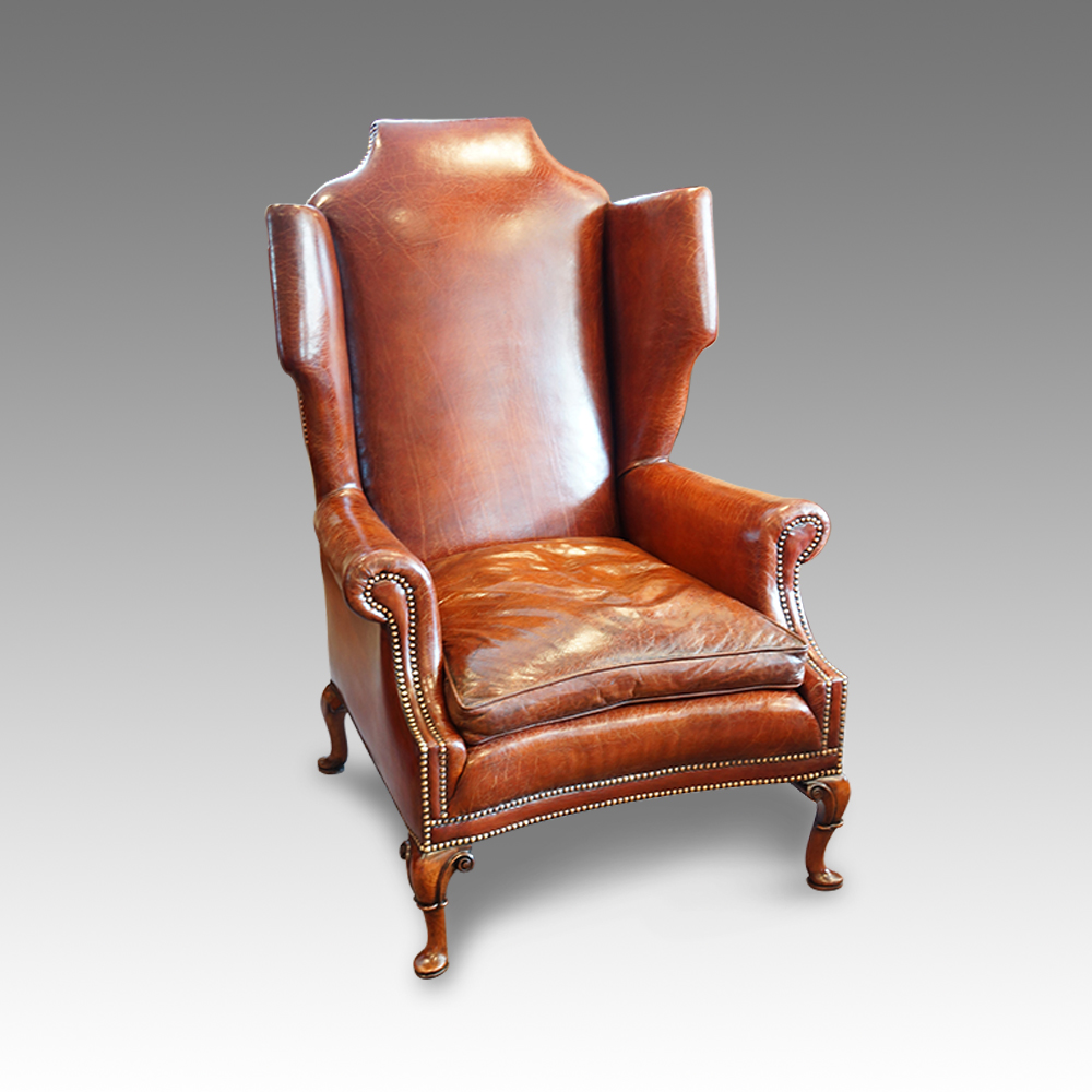 Queen Anne "style" Leather Wing-Chair (1 of 1)