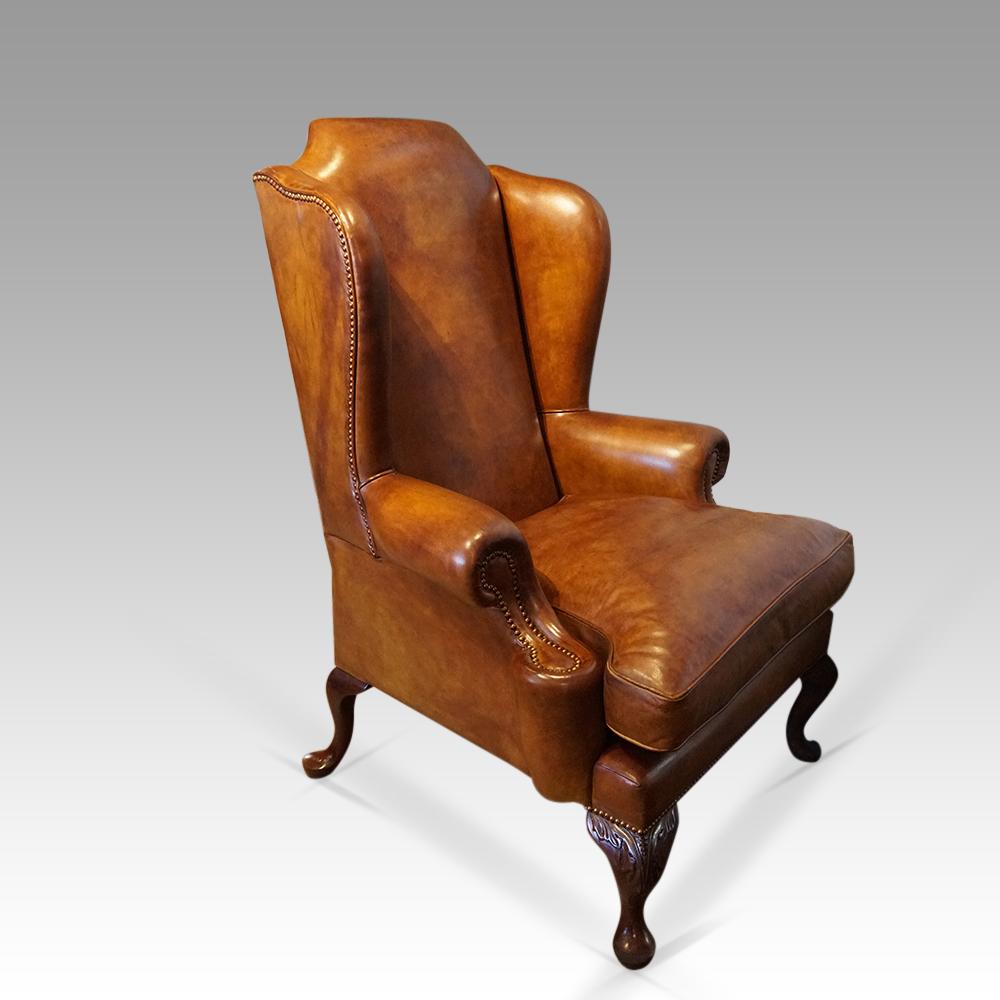 Queen Anne Style Leather Wing Chair c.1920