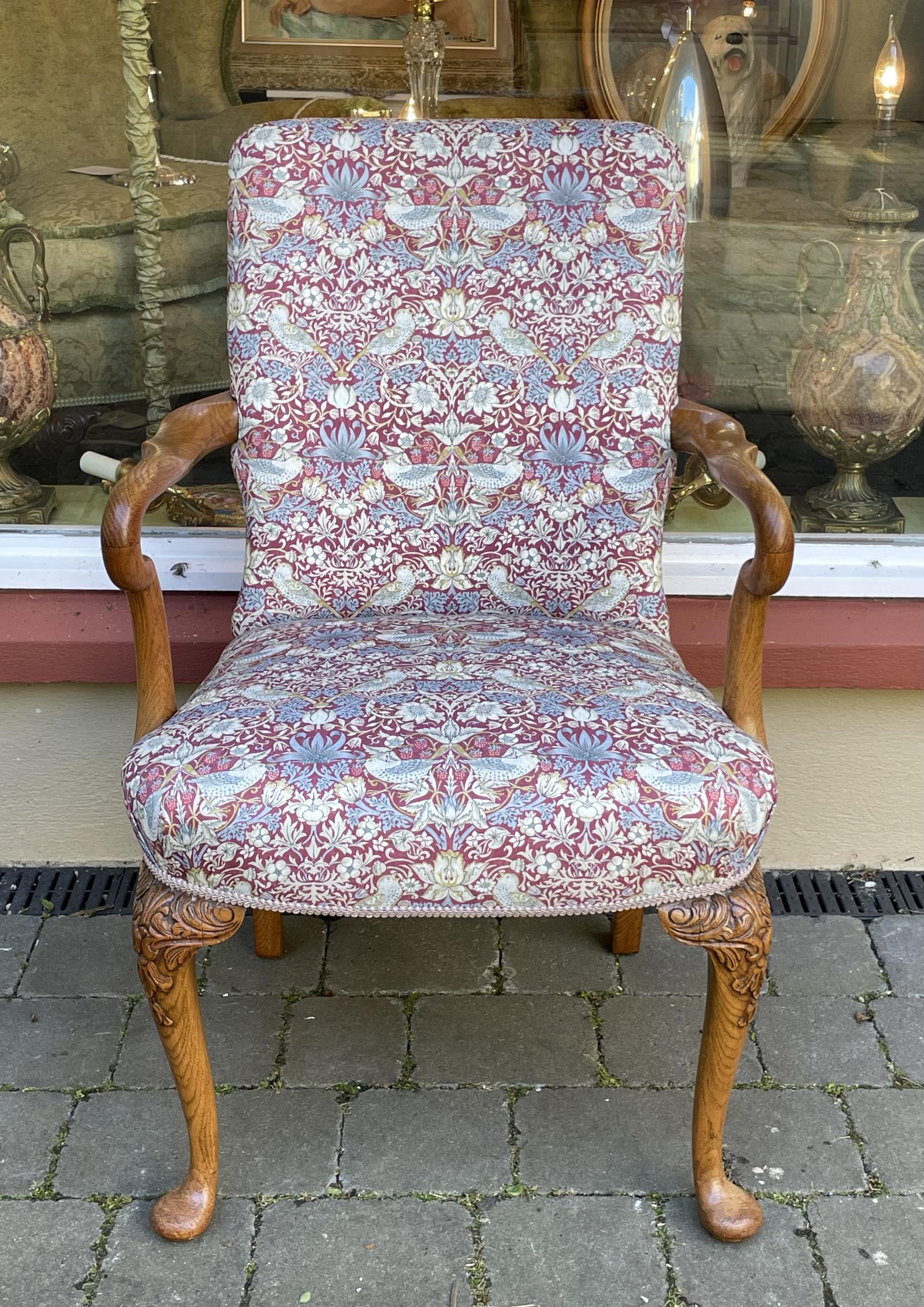 Queen Anne Style Oak Desk Library Chair, William Morris Fabric