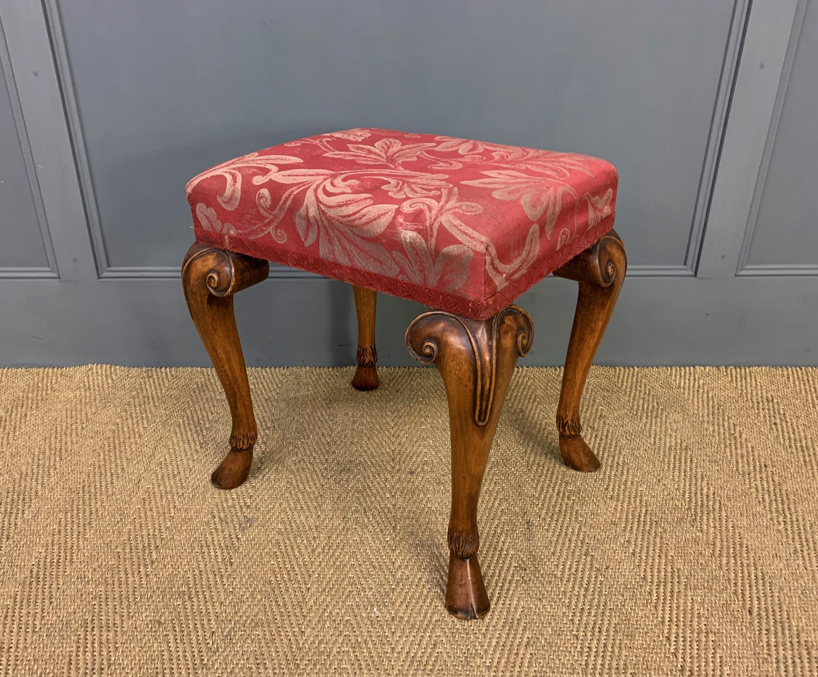 Queen Anne Style Upholstered Walnut Stool