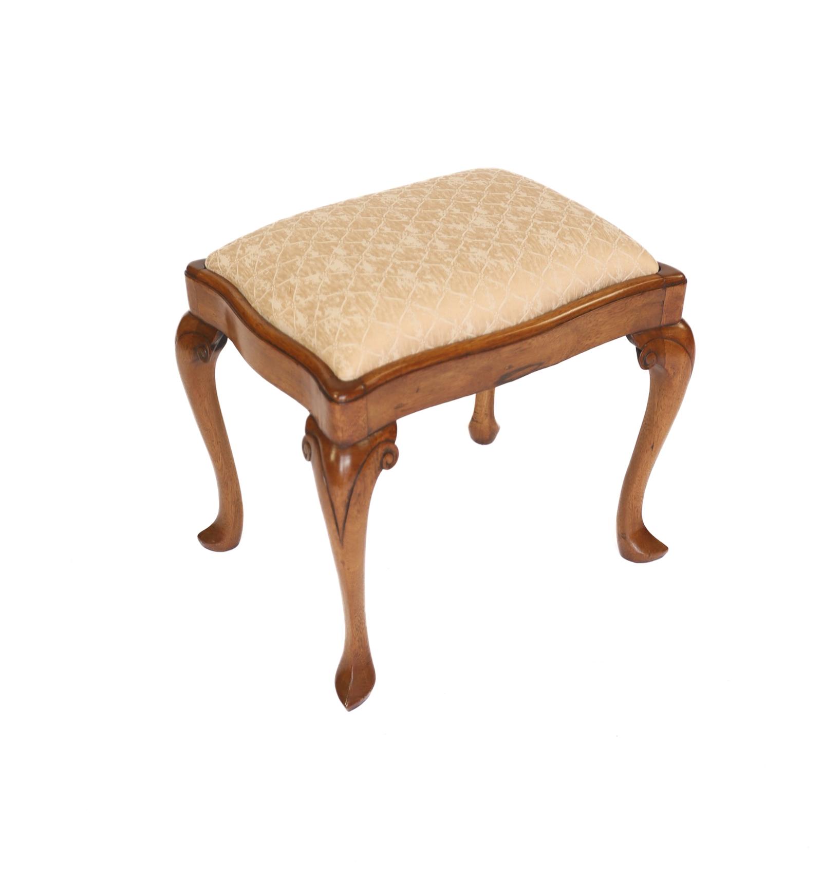 Queen Anne Style Walnut Dressing Stool Circa 1930s