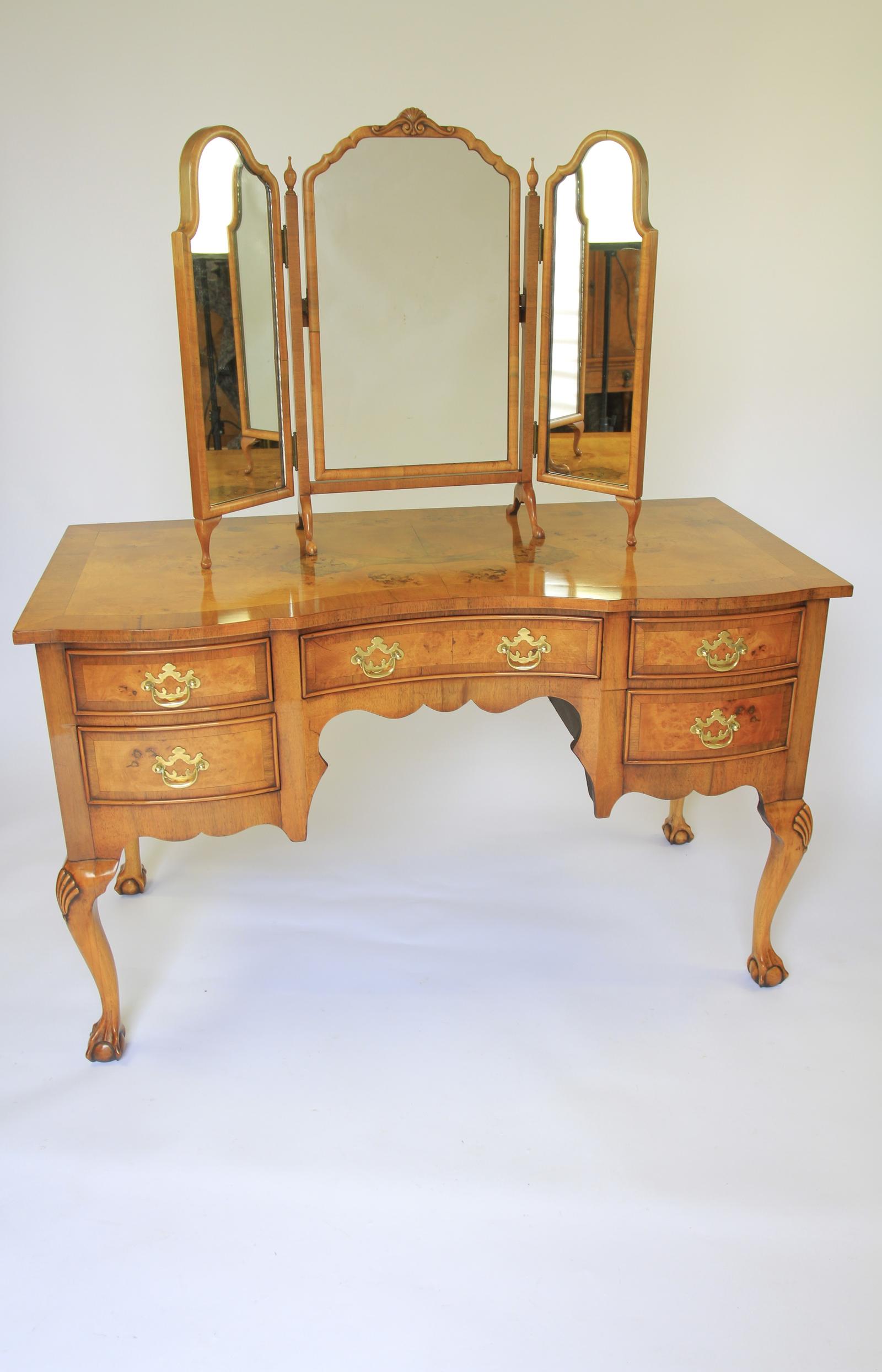 Queen Anne Style Walnut Kneehole Dressing Table with Mirror